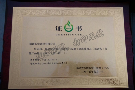 • 2015-01-28福建省新材辦通過我公司“蒸壓加氣混凝土砌塊”新材產(chǎn)品認(rèn)定